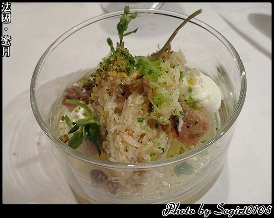 這坨看起來像冰淇淋的開胃菜吃起來像是加了馬鈴薯的奶泡~還有芝麻增加香氣…