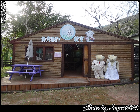 這間小木屋是DIY教室…門口的新郎新娘泰迪熊好有喜感~