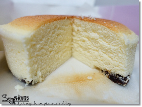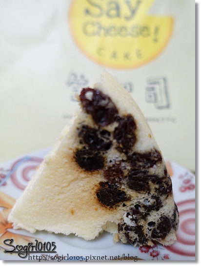 輕乳酪的粉黃色顏色好美…好新鮮的感覺~隱約可以看見底下的葡萄乾