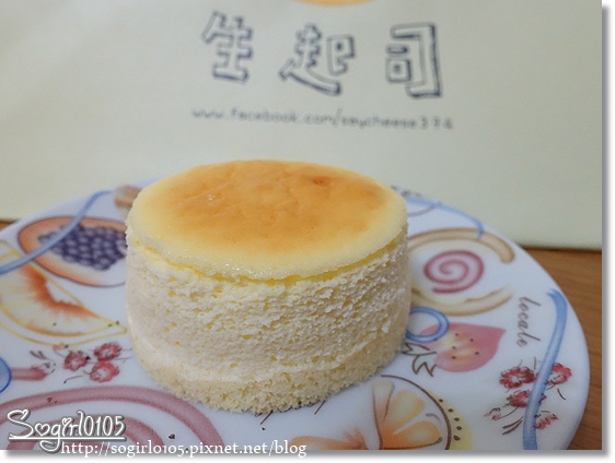 一打開盒子就看到粉嫩細緻的起司蛋糕…上頭的烙印讓蛋糕的視覺效果加分~
