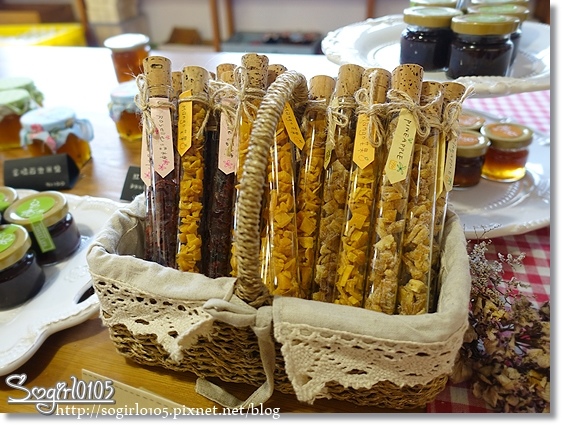 果乾放在試管裡…全都切成小小塊的~造型很可愛但吃起來很不過癮吧!!