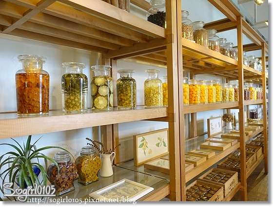 一整排架子上都是裝了果乾的玻璃罐…好壯觀