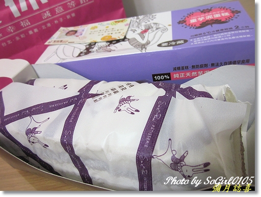 重芋泥蛋糕…放在合身的紙盒裡~用包裝紙裹起來