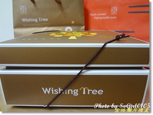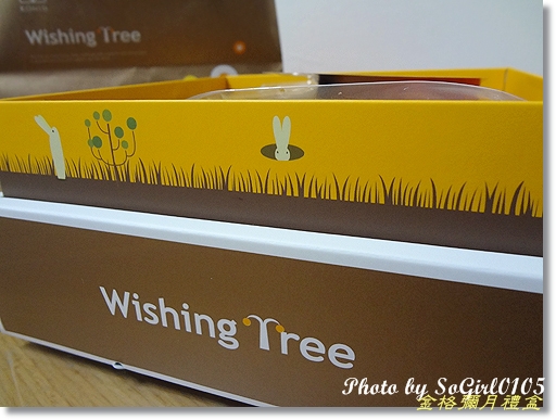 這個方形盒子看起來很小巧可愛…帶金色的盒子畫了一棵Wishing Tree