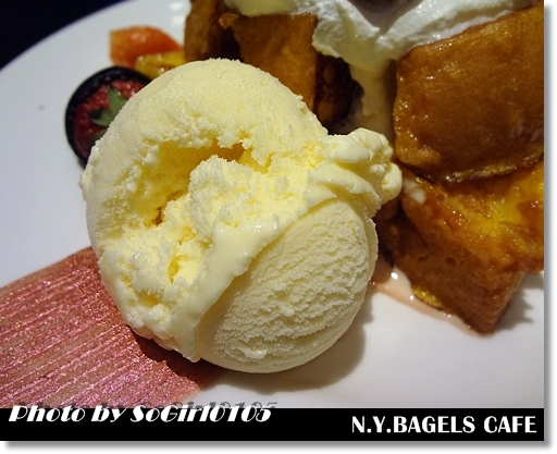 冰淇淋應該是最後擺上去的…表面金黃的吐司看起來真是可口~