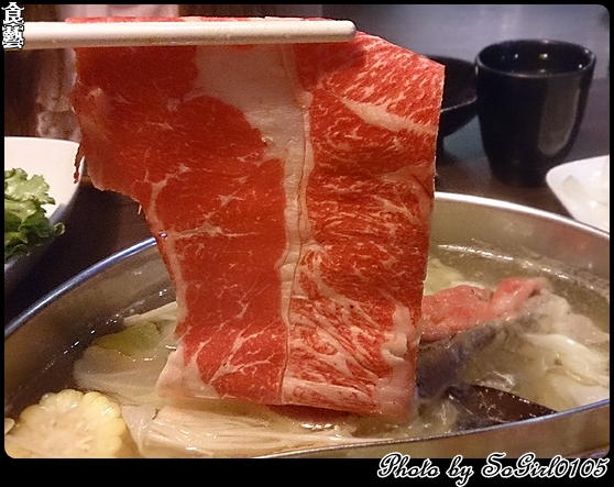 雪花沙朗牛肉鍋~排列的很有美感肉片…雖然只有六片~不過看起來不小片